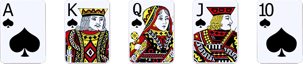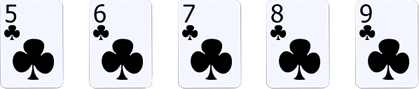Contoh Straight Flush: A, 2, 3, 4, 5 (berurutan dengan suit yang sama)