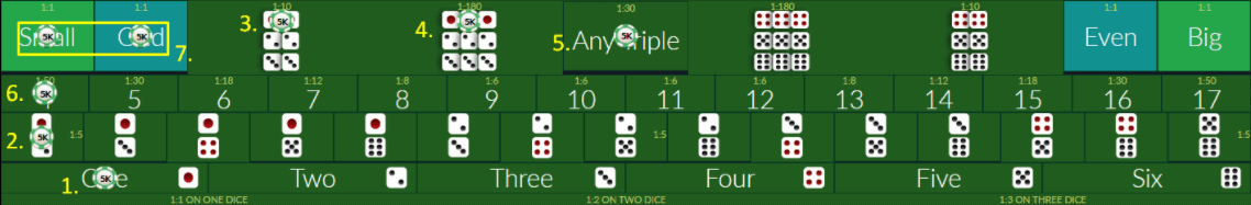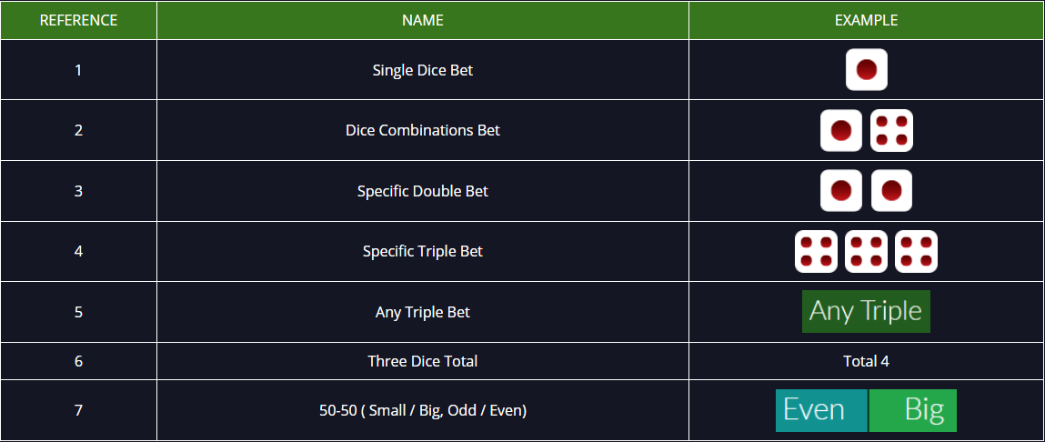 Taruhan pemain yaitu : Kecil sebesar Rp 100.000 dan mendapatkan kei 10%. Artinya kalau member menang, member mendapatkan hadiah tambahan 10% dari nilai taruhan.